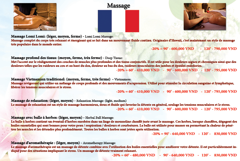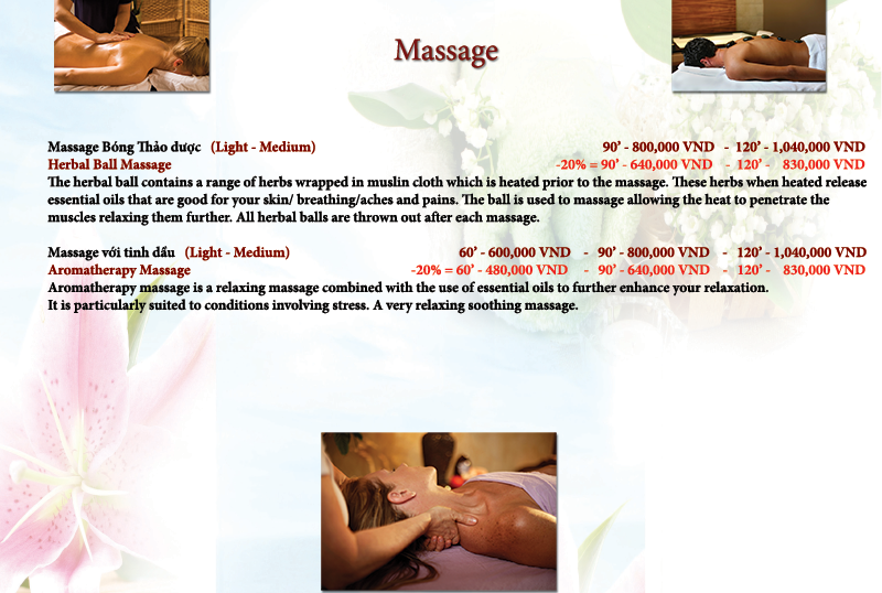 Our extensive menu of treatments ensures there’s something for everyone. Whether you seek deep relaxation or targeted pain relief, our expert therapists provide: - Massage Nha Trang specialties, including Deep tissue massage, remedial massage, Lomi Lomi massage, Vietnamese Massage, Hebal ball Massage, Aroma Massage and pregnancy massage (safe for expectant mothers). - Waxing services, including Brazilian waxing for men and women, performed with premium Australian products for a smooth, comfortable experience. - Luxurious facials, body scrubs, body wraps, and sunburn treatments to nourish and restore your skin.